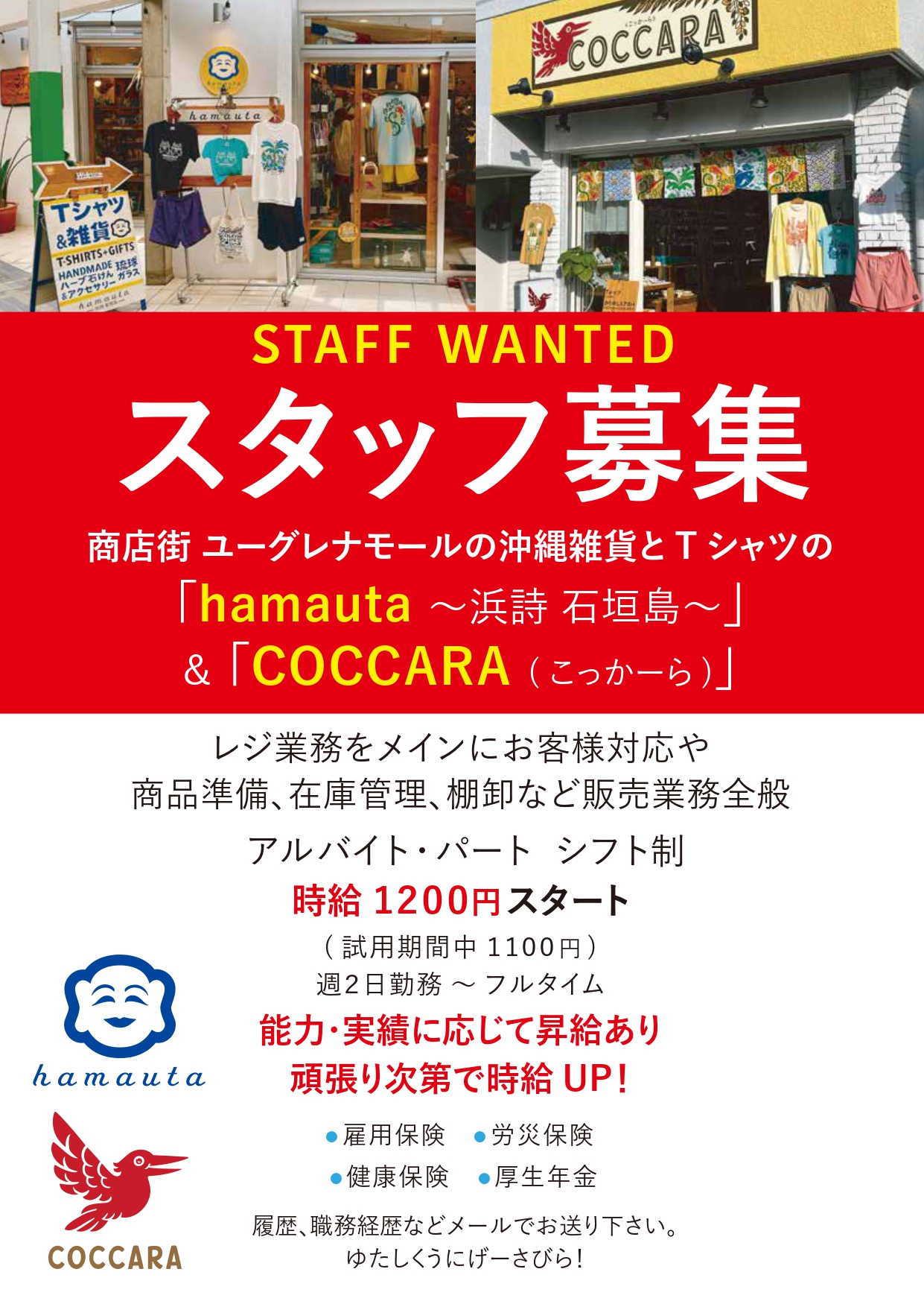 と 「COCCARA ( こっかーら)」の店舗スタッフを募集中です。